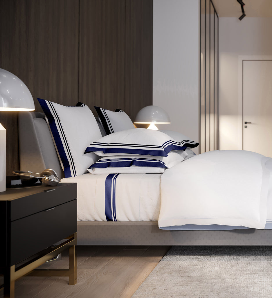Elevate your decor with our updated Resort bedding. Our Tailored Duvet Cover, now featuring a smaller 3.5cm border. Made from 100% long-staple cotton sateen with a 370 thread count for unmatched comfort and style.